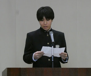 本日、次年度前期生徒会役員選挙の予定でしたが、役職数と立候補者が同数だったため選挙は行われず、決意表明を行ってもらいました。
